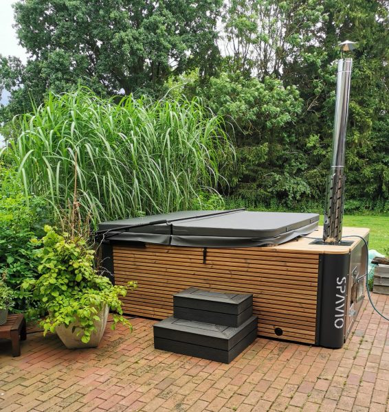 Spavio Hot Tub Model S Premium Weiß mit Gasheizer oder Wärmepumpe und Weinkühlschrank