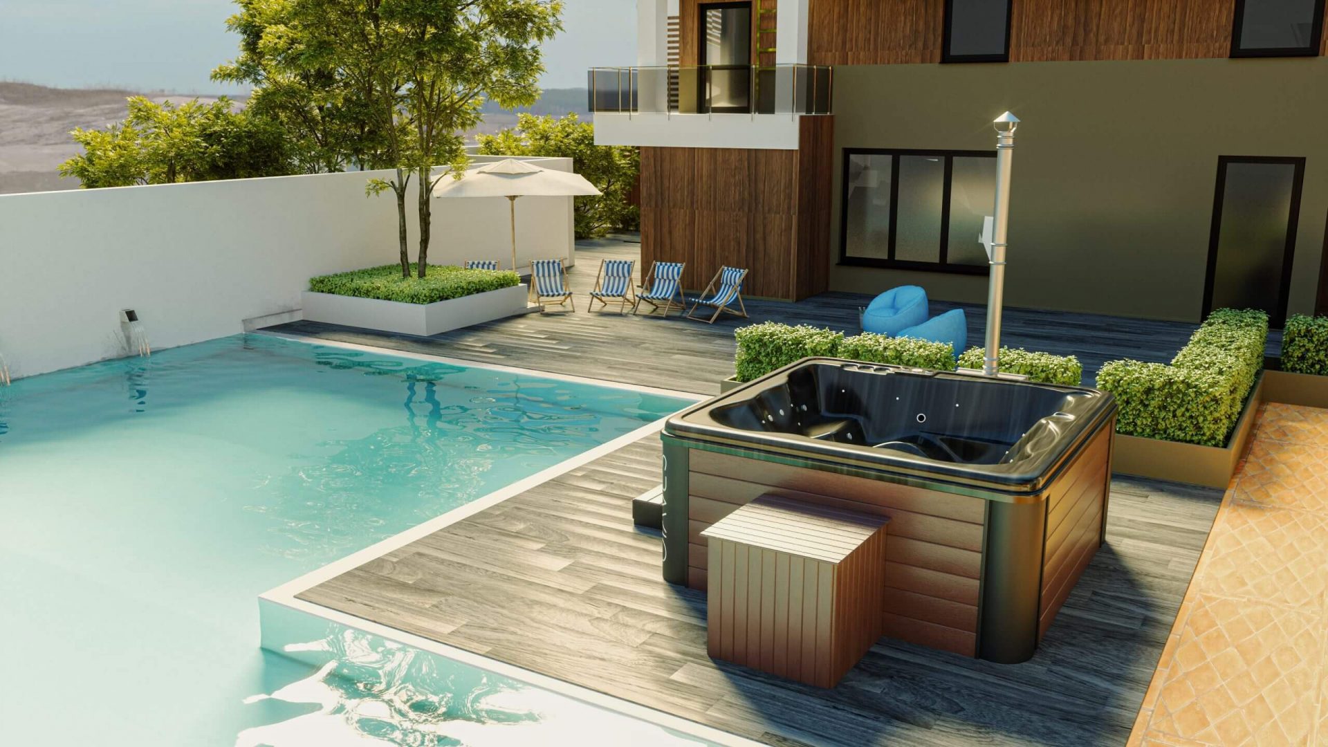 Dabei steht der Hot Tub den klassisch luxuriösen Versionen in nichts nach. Traditionell wurden Hot Tubs aus Holz gefertigt. Die Holz-Optik behalten wir auch bei unseren Produkten bei z.B. mit Fichtenholz oder Thermoholz. Dabei kombinieren wir bei unseren Hot Tubs zusätzlich moderne Materialien wie Acryl oder GFK.