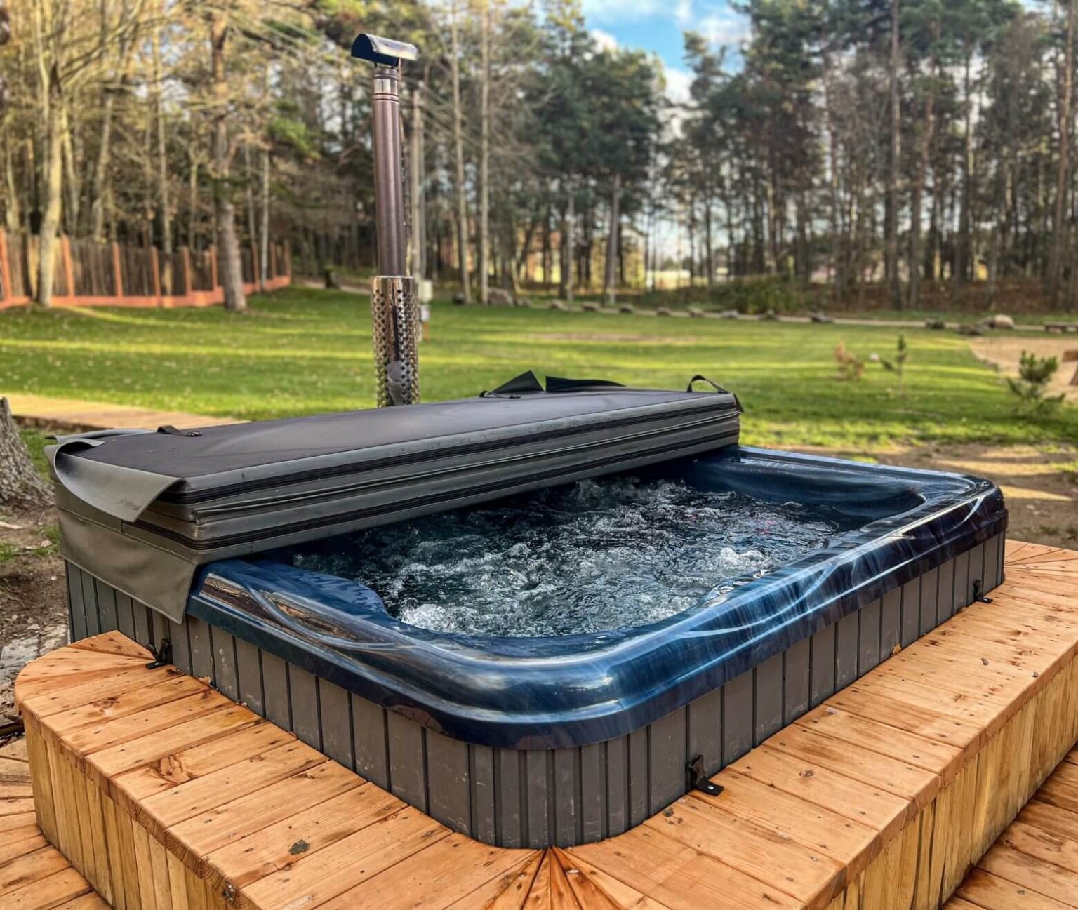 Dabei ist es von Vorteil, die Nutzung eines Holzofens sowie die elektrische Beheizung zu kombinieren und den Hot Tub mit einer Isolationsabdeckung und einer Isolation des Beckens durch Isolationsschaum zu bestücken. Sie profitieren somit vom Besten aus beiden Welten – schnell hochheizen und unkompliziert die Temperatur des Wassers halten – durch die Isolation auch über Tage. Dies senkt die Heizphasen.