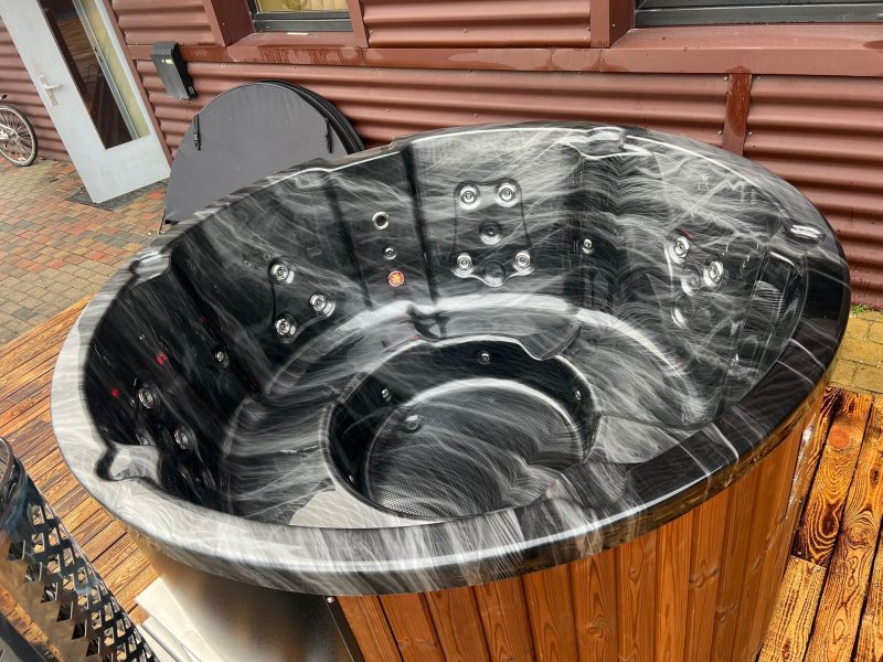 - Die runde Form fördert ein gemütliches und geselliges Badeerlebnis, ideal zum Entspannen allein oder in Gesellschaft.