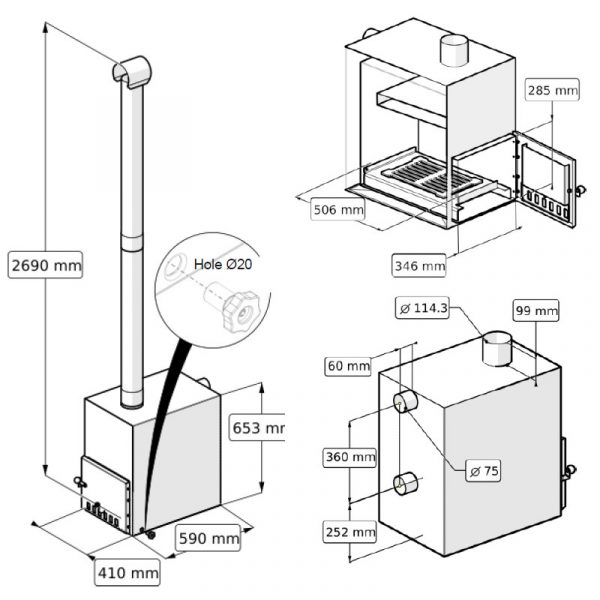 Unser leistungsstarker großer Alu Holzofen. Bei einer Außentemperatur zwischen 3 und 5 ° Celsius und einer Wassermenge von 1400 Liter erreicht dieser Ofen in etwa 90 Minuten die gewünschten 39°C Wassertemperatur. Die Geschwindigkeit des Verbrennungsvorgangs wird mit einer Luftklappe gesteuert. Die Holzscheiden können bis zu 472 mm lang sein.